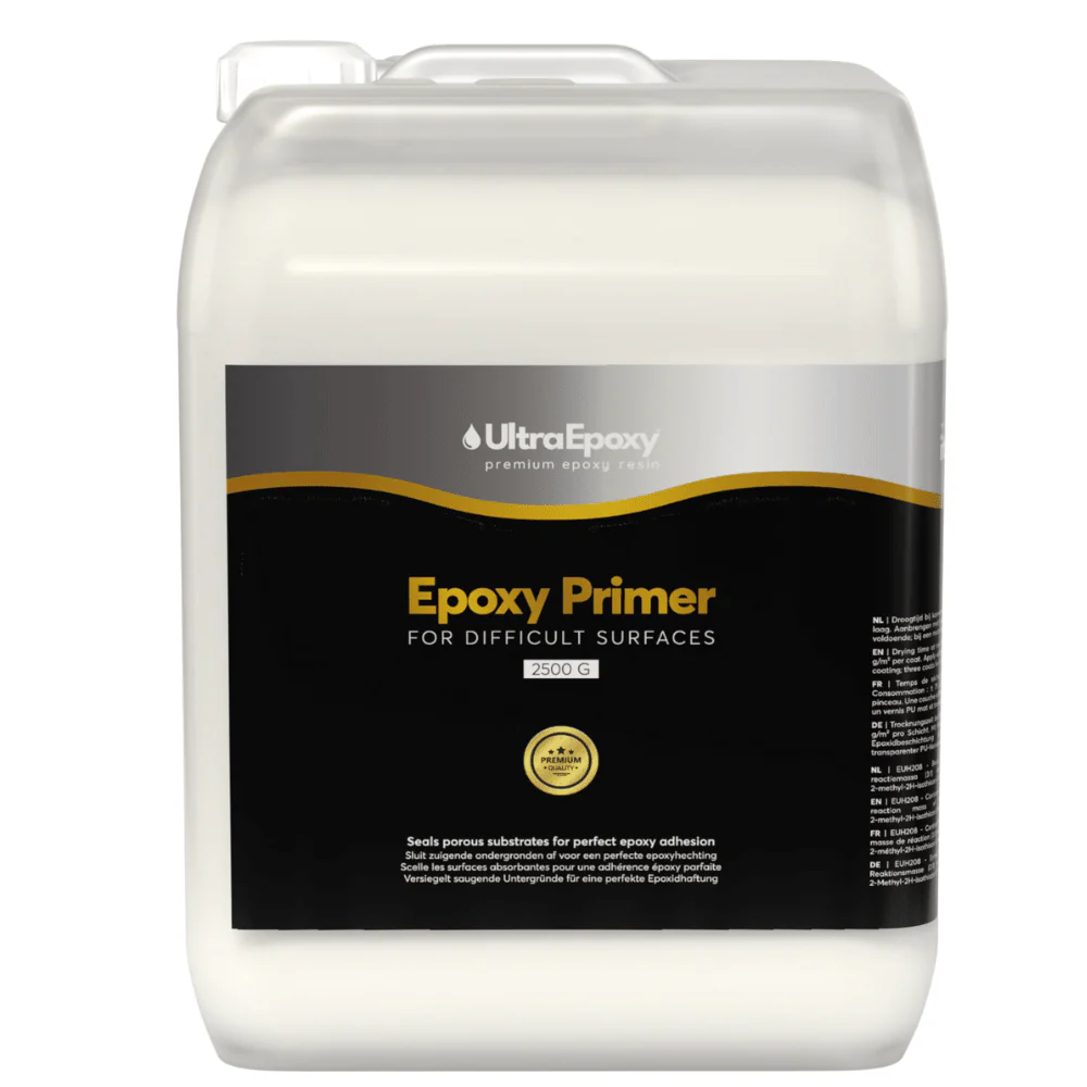 Een perfect resultaat met epoxy begint altijd met een epoxy primer. Deze 1-component voorstrijk voorkomt dat je ondergrond zuigt en zorgt voor maximale hechting van je epoxy vloercoating, gietvloer of giethars project.