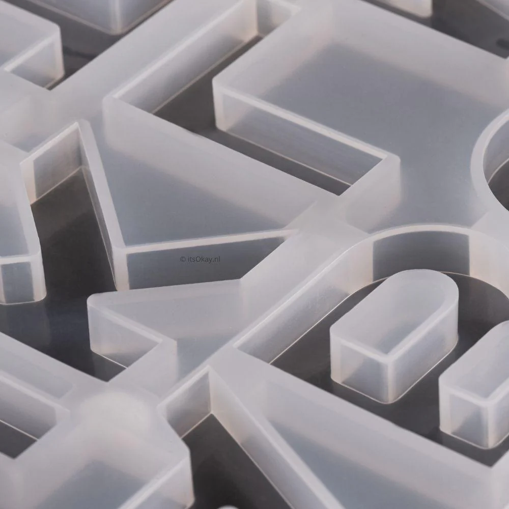 Als je letters maakt met deze mal en ze na uitharding uit de mal haalt, bevindt de egale kant zich aan de onderkant. Het grote voordeel hiervan is dat eventuele decoraties die naar de bodem zijn gezakt, niet zichtbaar zijn aan de voorkant. De mooie, gladde zijde zit aan de onderkant. Deze mal is vooral geschikt als je in laagjes werkt, omdat de voorkant hierdoor mooi egaal blijft.